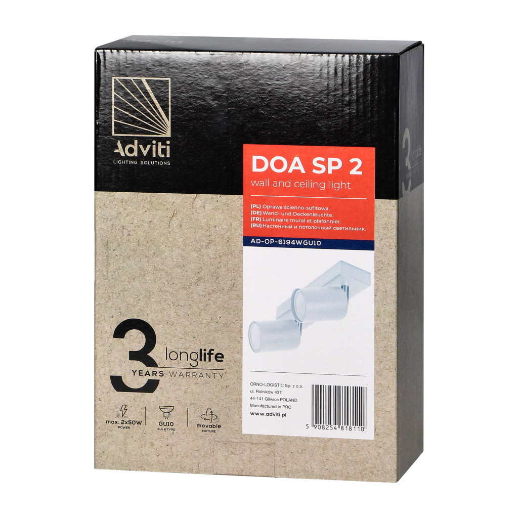 Adviti spot lámpa fali és mennyezeti fehér 2x GU10