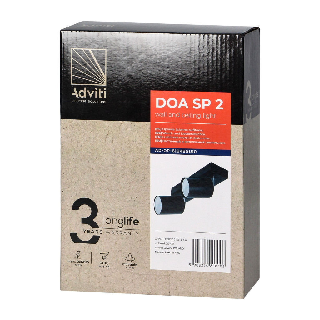 Adviti spot lámpa fali és mennyezeti fekete 2x GU10
