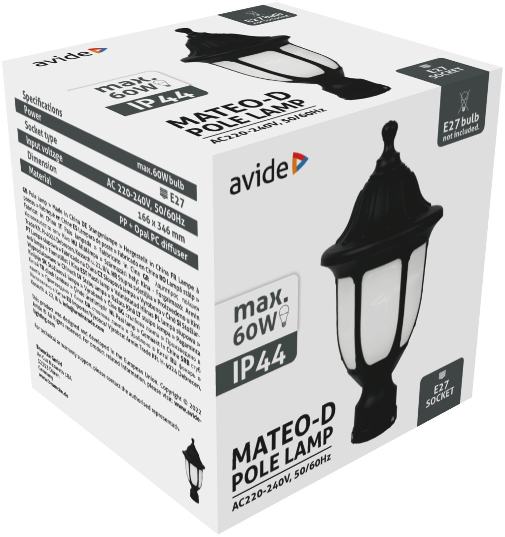 Avide Kültéri Álló Lámpa Mateo XS 1xE27 Fekete IP44
