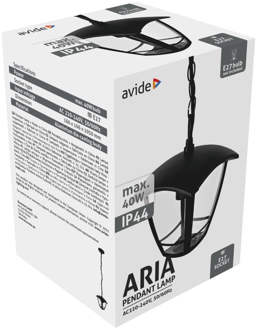 Avide Kültéri Függesztett Lámpa Aria 1050mm 1xE27 Fekete IP44