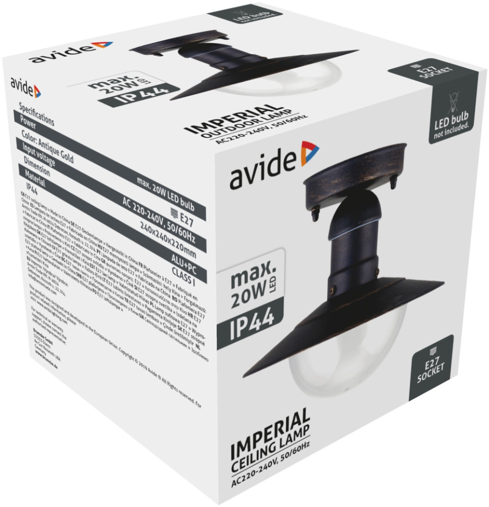 Avide Kültéri Mennyezeti Lámpa Imperial 1xE27 IP44 Antik Arany
