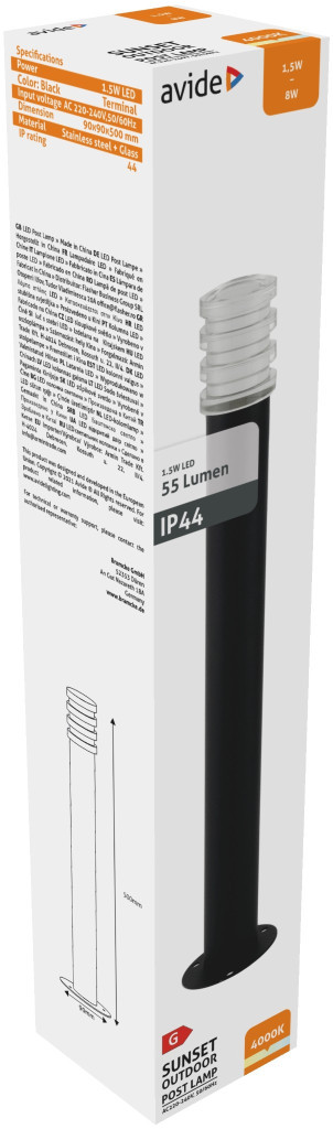 Avide kültéri álló lámpa Sunset LED 1.5W NW 500mm IP44 Black