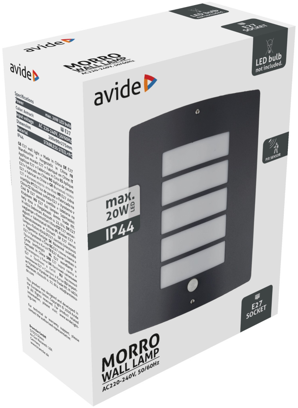 Avide kültéri fali lámpa Morro 1xE27 PIR IP44 Antracit