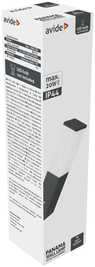 Avide kültéri fali lámpa Panama 1xE27 IP44 Antracit