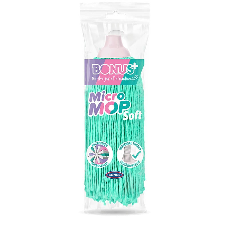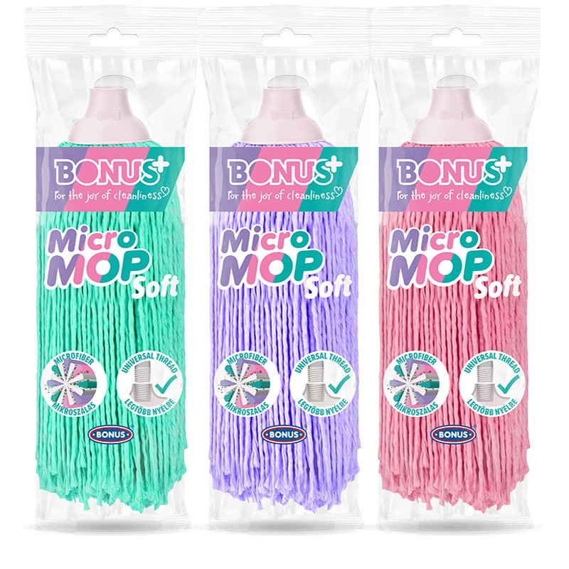 A MicroMOP SOFT felmosófej egy kiváló választás a sima fa és laminált padlókhoz. Hatalmas nedvszívó képessége miatt magába zárja a nedvességet és szinte alig hagy maga után vizet. A finom, sodort, 100% prémium minőségű mikroszálakból készült, így tökéletes választás sima fa felületekre, csempékre, járólapra és PVC-re. A nevéhez hűen csodásan puha szálak alkotják, melyeket a legjobb kíméletesen, akár kézzel is lehet mosni. A felmosás során nem kell rányomni a padlóra, mert vizesen megsokszorozódik a tömege, így jól tapad és tökéletesen tisztít. A mikroszálaknak köszönhetően valóban felveszi a szennyeződést és 99,95%-ban eltávolítja a felületi baktériumokat. A MicroMOP SOFT két fajta menetű fejjel rendelkezik, így szinte minden típusú nyéllel kompatibilis. Érdemes beszerezni a színben hozzá passzoló vödröt is!