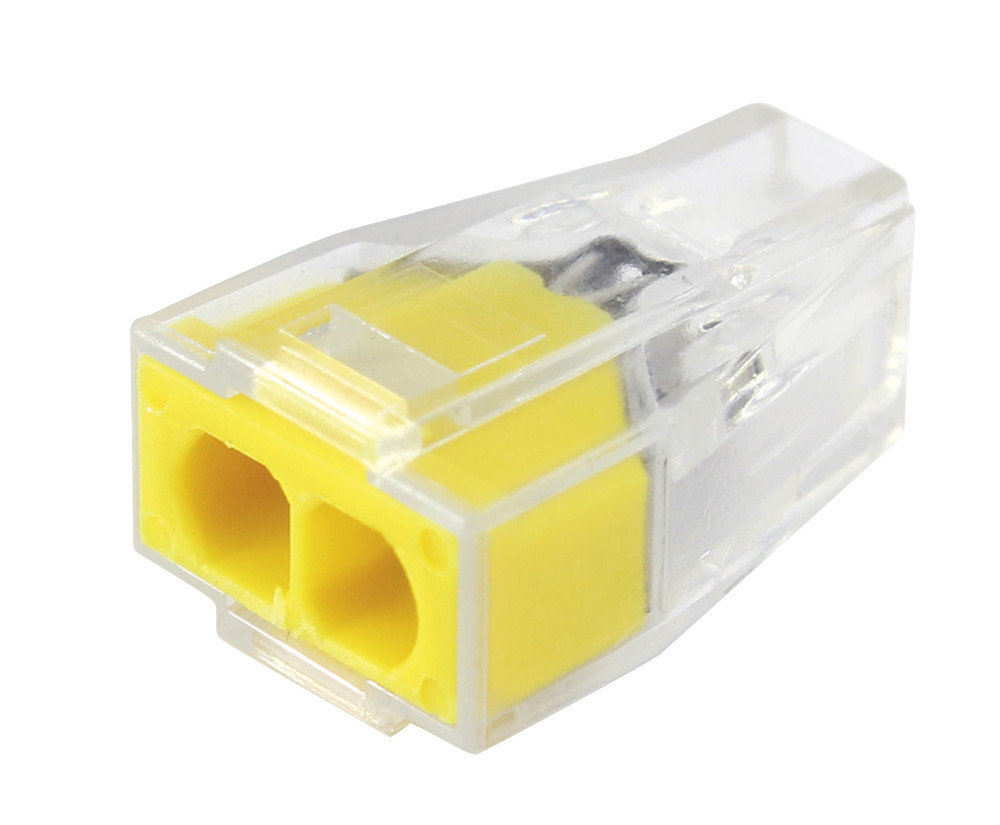 Commel 2-es vezeték összekötő tömör vezetékekhez, 0,75-2,5 mm2, átlátszó sárga, 20 db