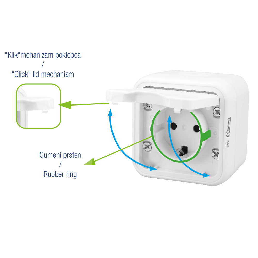 Commel falon kívüli 2P+F dugalj Fehér csatlakozóaljzat IP55