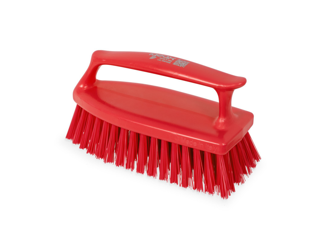 Igeax élelmiszeripari tisztítókefe, függőleges markolattal, Piros, 0,5mm közepes sörtével
