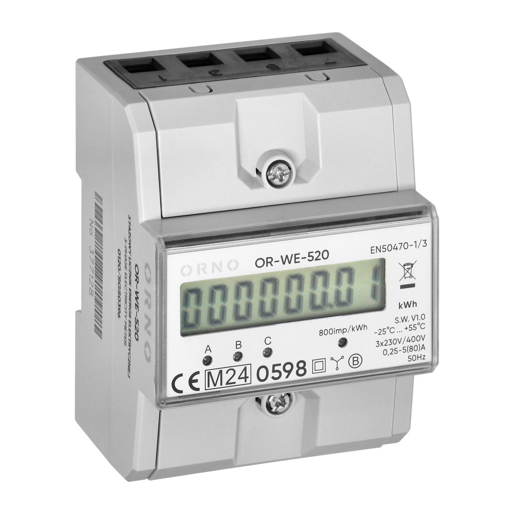 Orno háromfázisú digitális fogyasztásmérő sínre szerelhető 80A