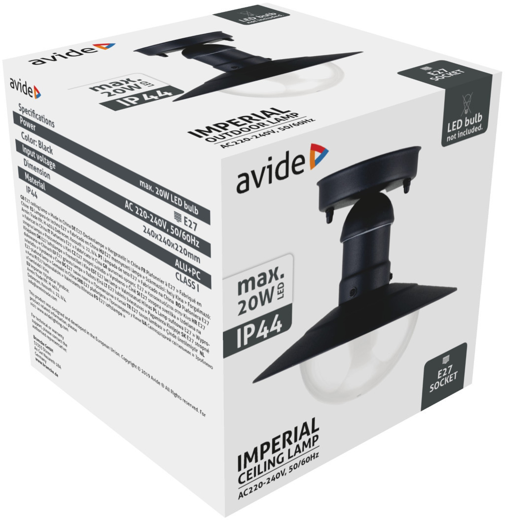 Avide Kültéri Mennyezeti Lámpa Imperial 1xE27 IP44 Fekete