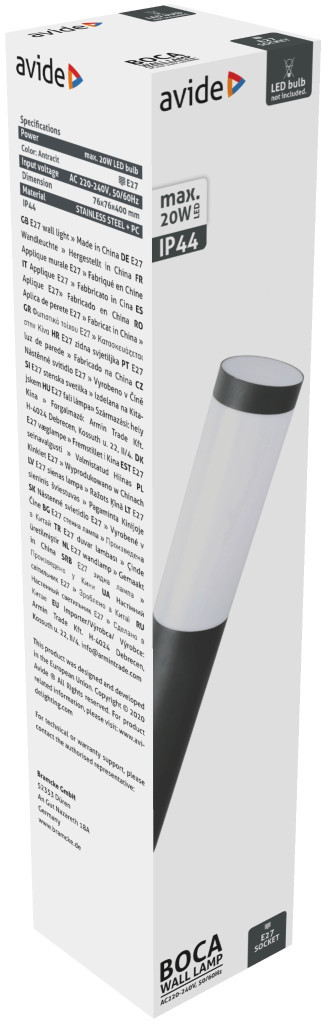 Avide kültéri fali lámpa Boca 1xE27 IP44 Antracit
