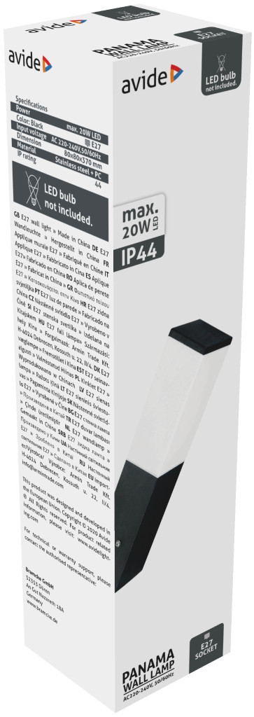 Avide kültéri fali lámpa Panama 1xE27 IP44 fekete